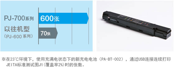 從本次推出的新機型開始,都將標配鋰離子充電電池。因此,與配備鎳氫充電電池的以往機型相比,大幅提高了可打印張數(shù)。